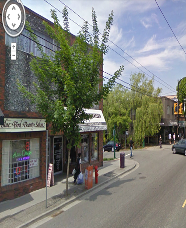 On the nearside of Grant we have 1501-1503 Commercial which was built by Angus Campbell in the spring of 1936. As the upper image shows, this building was originally a single-storey flat-roofed structure, a signature style for Campbell. However, as can be seen from the modern image this building now has two storeys, a change that was made in 1970s.