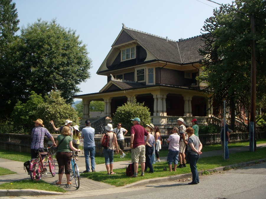 Here’s a photo, by Connie Minogue, of the group on the walk on Saturday morning in front of the monastery/manse of St. Francis of Assisi Church at Semlin and Napier. Thanks to everyone who came out and contributed to the financing of our Century House Signs project, which will be launched soon.