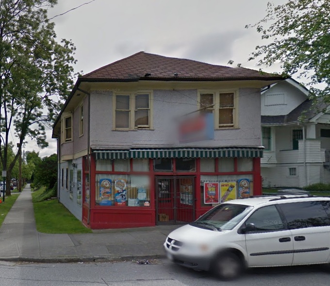As reported in the previous post, Scott’s Grocery is having a close-out sale; Steve and Esther, who have run it for more than 20 years, are retiring to Burnaby, the building has been sold, and the new owner reportedly wants to build “apartments” on the RM4-zoned site. Here’s Scott’s in Google Street View: