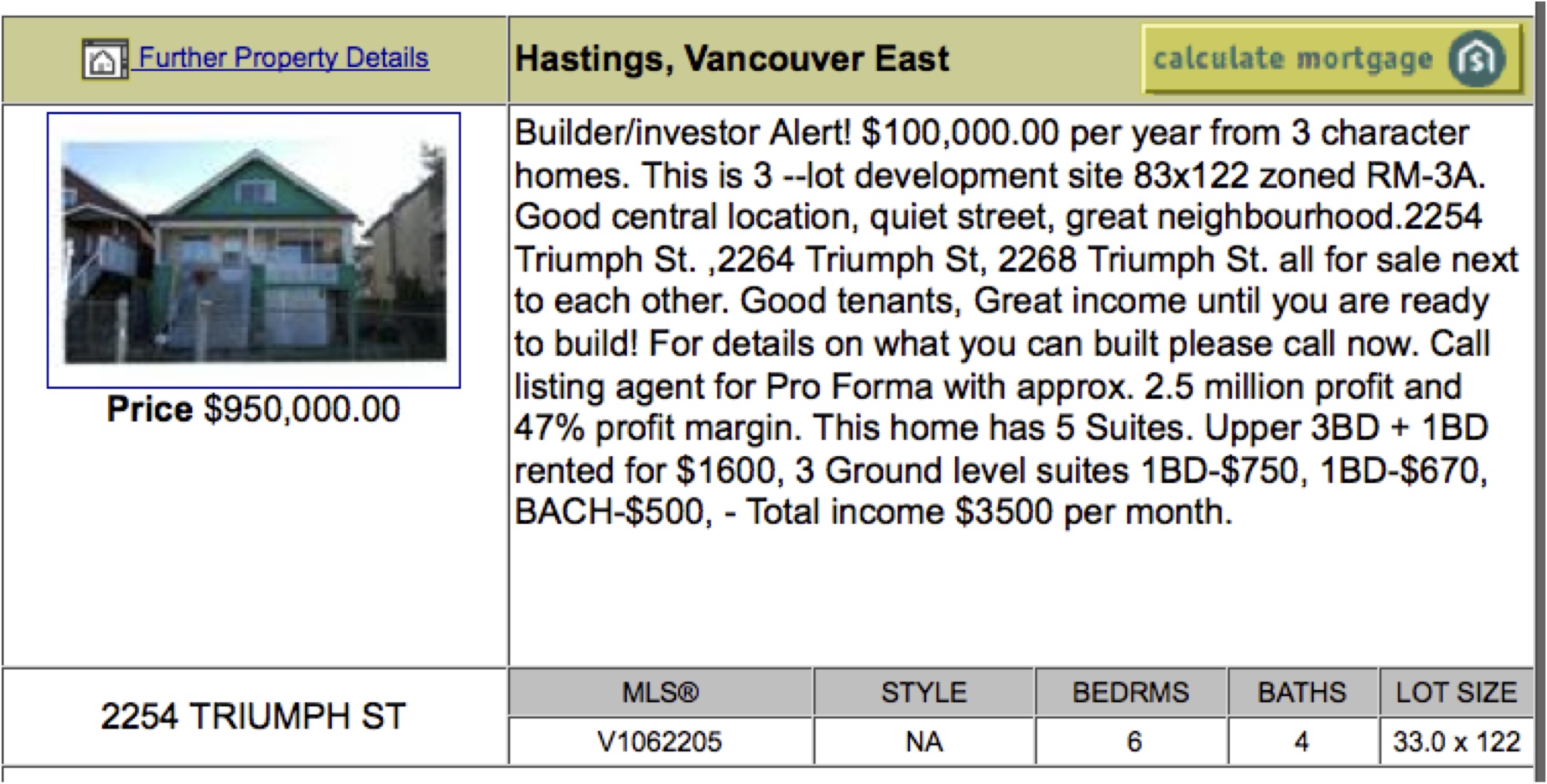 There was much discussion and analysis of a current assembly of 3 rooming houses in the 2200-block of Triumph, interesting because of the number of affordable suites in each of them and also the potential profit for a developer. This is one of them: