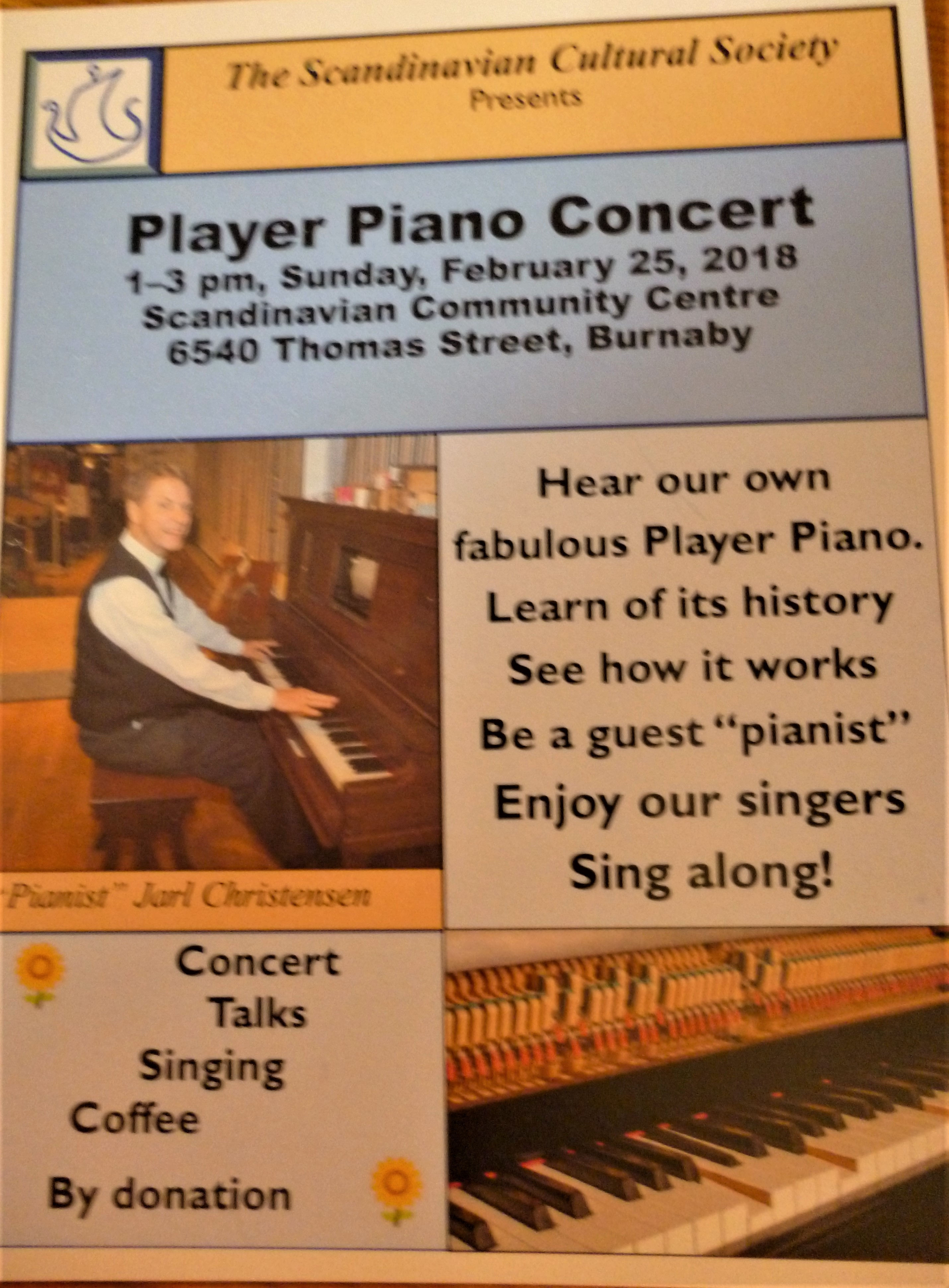 - John Stuart then mentioned a player piano concert to be held in Burnaby next week.