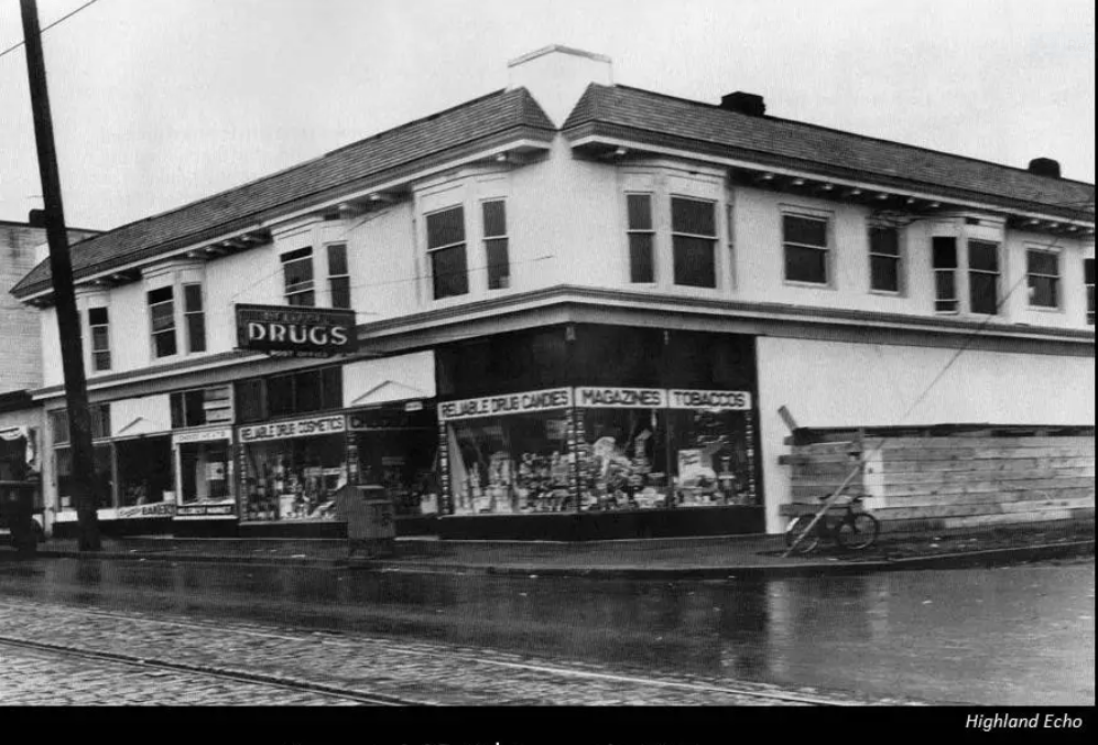 Reliable Drugs began life at 1850 Commercial, trading for a while under the name of the original founder, Allen E. Davis, and then under Reliable Drugs. After graduation, Louis Toban purchased the store in September 1926 and he retained the name. Business expansion appears to have been on Toban’s mind almost from the beginning: he had opened a second branch at 902 Commercial by 1929. The store remained there until 1933 when it moved up to the 1100 block. A third branch was at Commercial and Broadway in 1935, and by the spring of 1938 there were four stores in the chain, including one at Broadway & Alma. Toban said he said he was “very optimistic about business prospects” and his company reported “a very substantial gain over the previous year.” Later that year, they opened another branch on Davie Street in the West End.iv