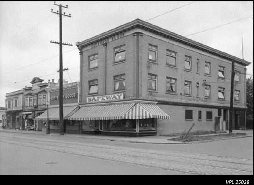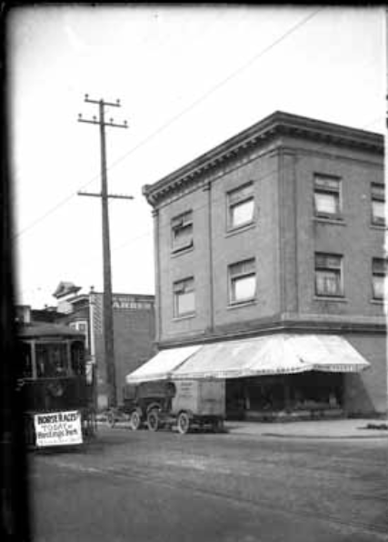 On Friday, 18th May 1923, John Y. Steel received a $3,000 building permit for a new store at 1544 Commercial. Steel had operated a dry goods business at 1584 Commercial since 1918. This image from 1922 shows the empty lot beside the corner block.