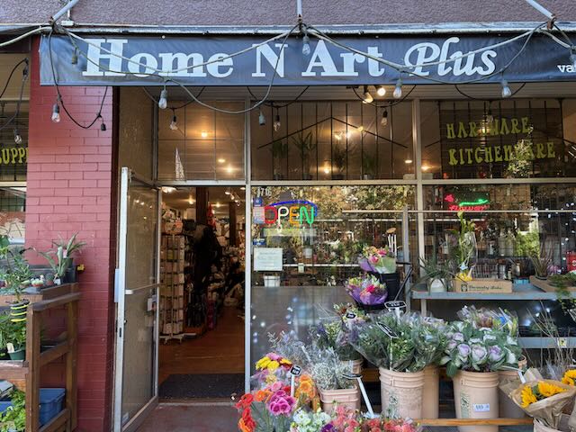 At 1716 is Home N Art Plus, a thriving variety store with a wide selection of stock — plants, cut flowers, hardware, stationery, housewares, and lots more.