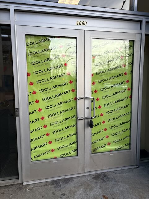1690 Commercial, the former bank building on the northeast corner of Commercial and 1st Avenue, has been vacant for months, but it looks like that is about to change. The doors and windows are covered over with colourful paper announcing the eventual arrival of $DOLLARMART, which seems to be a newcomer to the dollar store universe; a quick online search comes up with nothing about this particular company. We certainly hope that the arrival of this business does not muscle out our own Home N Art Plus at 1716 Charles.