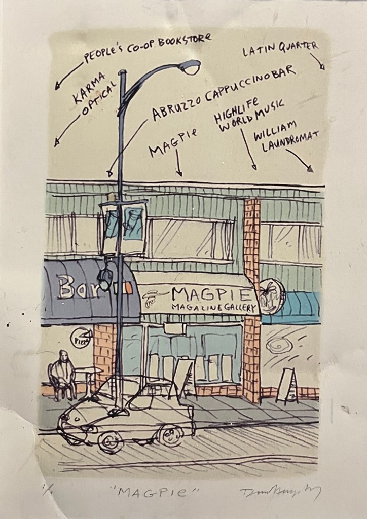 It was in the next block that we bumped into an old friend who played a pivotal role in the history of The Drive, Kevin Potvin, who was the owner/proprietor of Magpie Magazine Gallery from 1994 to 2008, located at 1319 Commercial (the space currently occupied by Studio Full Bloom). Magpie was always a great place to visit, with a huge selection of publications, from mainstream to as esoteric as you could imagine, and if he didn’t have what you wanted, he would order it for you. Kevin was also chief author and publisher of East Van’s own favourite publication: The Republic of East Vancouver, which was published biweekly from 2000 to 2009. If you want to know more about this vibrant period in the life of The Drive, check out these links: